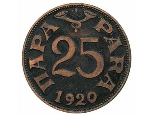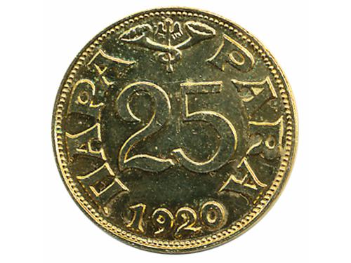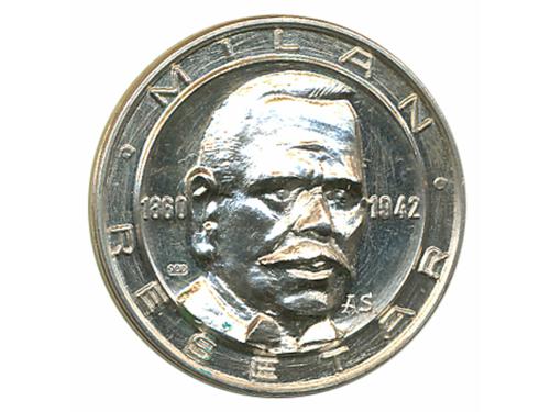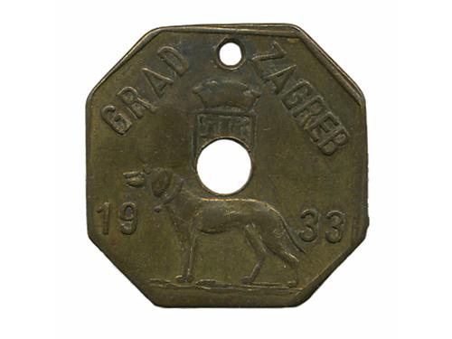 Aukcija br. 61 - Numizmatika, militarija Žetoni 107 - Pula, hotel "Riviera" 100 krajcara, žeton, oko 1912., AE 29 mm, lijep 150 EUR 108 - CRIKVENICA, žeton, "AD turres", 10 filira, ME 10 EUR 109 - ZAGREB, grad, pseća medaljica 1933. godina, AE, 28 mm 8 EUR 110 - KRAPINA, kotar, pseća medaljica 1908. godina, AE, 35 mm 12 EUR 111 - ŽETON HND-a, DUBROVNIK-Ragusa, Škuda povodom 50 godišnjice društva, AE, 28 mm 10 EUR 112 - ŽETON HND-a, DUBROVNIK-Ragusa, Škuda povodom 50 godišnjice društva, posrebreno patinirano AE, 28 mm 10 EUR 113 - ŽETON HND-a, DUBROVNIK-Ragusa, Škuda povodom 50 godišnjice društva, Ag ? - 8,4 g, 28 mm 15 EUR 114 - ŽETON HND-a, DUBROVNIK-Ragusa, Škuda povodom 50 godišnjice društva, pozlata Ae, 28 mm 10 EUR 115 - ŽETON HND-a, DUBROVNIK-Ragusa, Milan Rešetar, Ag 0.900 - 12,9 g, 28 mm, izuzetno rijetko 60 EUR 116 - 25 para 1920., žeton povodom 50 godišnjice prvog Yu novca, 1970. Cu, XF 20 EUR 117 - 25 para 1920., žeton povodom 50 godišnjice prvog Yu novca, 1970. pozlata Cu, XF 60 EUR