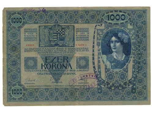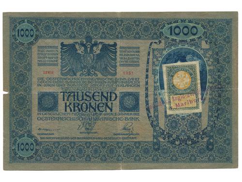 Aukcija br. 64 - Numizmatika, militarija 277 - 20 kruna Slovenija Kraljevina SHS, Austrija, pretisak ŠMARJE PRI JELŠAH / trg / Krajni ubožni svet 35 EUR 278 - 20 kruna Slovenija Kraljevina SHS, Austrija, pretisak ŠMIHEL STOPIČE / ŽUPANSTVO 35 EUR 279 - 1000 kruna Slovenija Kraljevina SHS, Austrija, pretisak VIDEM / Županstvo občine / okraj Kočevje 50 EUR 280 - 1000 kruna Slovenija Kraljevina SHS, Austrija, pretisak TRŽIŠČE / ŽUPANSTVO 75 EUR 281 - 1000 kruna Slovenija Kraljevina SHS, Austrija, pretisak Podružnica Anglo-avstrijske banke / v Mariboru (s markom - II. nostrifikacija) 25 EUR 282 - 1000 kruna Slovenija Kraljevina SHS, Austrija, pretisak JADRANSKA BANKA PODRUŽNICA MARIBOR (s markom - II. nostrifikacija) 15 EUR 283 - 1000 kruna Slovenija Kraljevina SHS, Austrija, pretisak MESTNA HRANILNICA LJUBLJANSKA (s markom - II. nostrifikacija) 15 EUR 284 - 1000 kruna Slovenija Kraljevina SHS, Austrija, pretisak DAVČNI URAD SHS MARIBOR (s markom - II. nostrifikacija) 20 EUR 285 - 1000 kruna Slovenija Kraljevina SHS, Austrija, pretisak Podružnica avstro-ogrske banke v Ljubljani 15 EUR 286 - 1000 kruna Slovenija Kraljevina SHS, Austrija, pretisak Finančno okrajno ravnateljstvo red.br.3 MARIBOR (s markom - II. nostrifikacija) 25 EUR 287 - 1000 kruna Slovenija Kraljevina SHS, Austrija, pretisak FINANČNA DEŽELNA BLAGAJNA V LJUBLJANI + Podružnica avstro-ogrske banke v Ljubljani (II. nostrifikacija - s markom) 15 EUR 288 - 1000 kruna Slovenija Kraljevina SHS, Austrija, pretisak LAŠKO / OBČINSKI URAD + Mariborska eskomptna banka (II. nostrifikacija - s markom) 30 EUR ←192021222324252627→