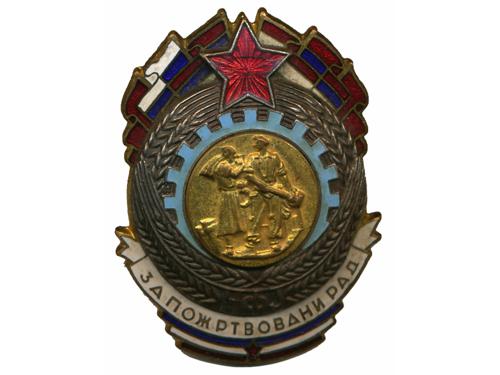 Aukcija br. 64 - Numizmatika, militarija 457 - KRALJEVINA JUGOSLAVIJA, oznaka društva nositelja ordena Karađorđeve zvijezde s mačevima, M.Goldštajn, Beograd. 110 EUR 458 - KRALJEVINA JUGOSLAVIJA, udruženje rezervnih vojnih starješina, M.Goldštajn, Beograd. 40 EUR 459 - Kraljevina Jugoslavija, Civilna zaštita, registarska pločica za bicikl CZ 40 30 EUR 460 - Kraljevina Jugoslavija, Civilna zaštita, registarska pločica za bicikl CZ 252 30 EUR 461 - Srbija, medalja "Spomen izbora Kralja Petra" 1903, AE, 33 mm, inačica bez signature 40 EUR 462 - Srbija, medalja "Spomen izbora Kralja Petra" 1903, Ag, 33 mm, signatura: CRISLBAUER Z J 1903 55 EUR 463 - JUGOSLAVIJA, socijalistička, Orden Rada s crvenom zastavom, IKOM Zagreb, Ag, 3 punce, izvrsna kvaliteta. 120 EUR 464 - JUGOSLAVIJA, socijalistička, "Za požrtvovani rad" broj 21, rijetko 250 EUR 465 - JUGOSLAVIJA, socijalistička, "Padobranski znak", rijetko 150 EUR 466 - Jugoslavija, orden Republike I. reda ( 6 baklji ) u originalnoj kutiji. IKOM-Zagreb,Izvrsna kvaliteta i rijetko. 700 EUR 467 - Jugoslavija, Plaketa AVNOJ-a 1983, za preživjele učesnike II. zasjedanja AVNOJA. Izuzetna rijetkost (samo 32 delegata dobila su ovu plaketu). 800 EUR 468 - Jugoslavija, Plaketa "TITO" povodom prestanka službe u JNA, u originalnoj kutiji i s dvije diplome s potpisima Branka Mamule. 33x27 cm 60 EUR ←343536373839404142→
