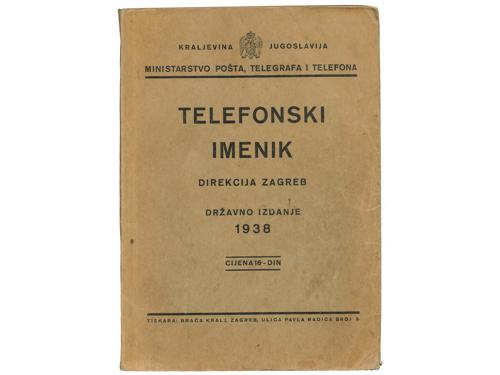Aukcija br. 64 - Numizmatika, militarija 553 - Zwei Jahre Einsatz und Aufbau – Bericht über Kriegseinsatz und Leistungen unserer Heimatfront, Deutsche Volksgruppe im Banat und in Serbien, 1943. 20 EUR 554 - Milan Mizler: Javna sigurnost. Zagreb, naklada pisca 1913. 30 EUR 555 - Kraljevina Jugoslavija, Ministarstvo pošta, telegrafa i telefona, Telefonski imenik – direkcija Zagreb, Državno izdanje Zagreb, 1938. 70 EUR 556 - A. D. Bubnov: Pomorski ratovi I-III. Dubrovnik, Nakladna knjižara "Jadran", 1941. 45 EUR 557 - Petar Mardešić: Brodski vježbovnik - Užeta i žabe (1. dio) / Pomorstvo – Snast (2. dio). Zagreb, Zapovjedništvo mornarice (Tiskara mornarice) 1942. / 1943. 40 EUR 558 - Priručnik, PREGLED RATNIH BRODOVA I TRAJEKATA, "vojna tajna"!!!, 1979., na 150 strana opisi svih brodova i plovila toga trenutka na raspolaganju JRM 35 EUR 559 - Uput za nastavu letenja. Prvi deo: Osnovi letenja. Beograd: Štamparija Jovanović i Bogdanov, 1928. 8 EUR 560 - Zrakoplovna navigacija: I. dio: Osnove zrakoplovne navigacije. Zagreb, 1943. 15 EUR 561 - HRVATSKA KRILA br. 8/1941. 8 EUR 562 - HRVATSKA KRILA br. 3/1942. 8 EUR 563 - HRVATSKA KRILA br. 13/1942. 8 EUR 564 - HRVATSKA KRILA br. 14/1942. 8 EUR ←424344454647484950→
