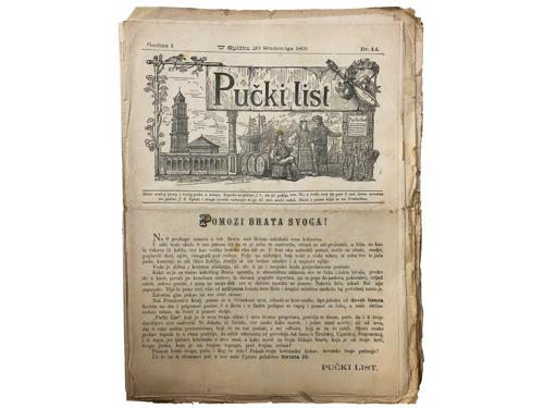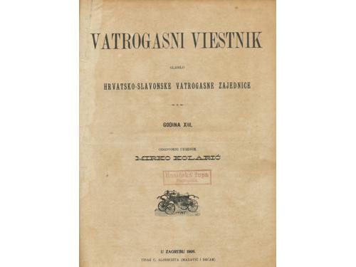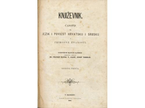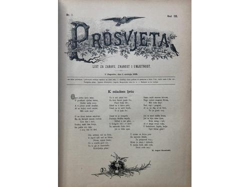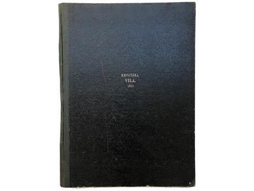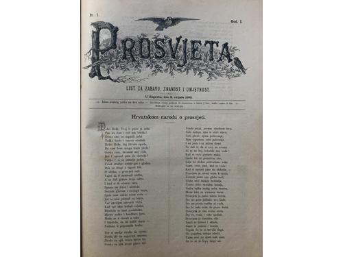 Aukcija br. 65 - Knjige, zemljovidi, plakati 853 - KNJIŽEVNIK, časopis za jezik i poviest hrvatsku i srbsku (svezak 1). Zagreb: Knjigotiskarna Dragutina Albrechta, 1864. 50 EUR 854 - KNJIŽEVNIK, časopis za jezik i poviest hrvatsku i srbsku (svezak 3). Zagreb: Knjigotiskarna Dragutina Albrechta, 1866. 50 EUR 855 - Viestnik hrvatskoga arkeologičkoga družtva (godina I). Zagreb: Tiskarski i litografijski zavod C. Albrechta, 1879. 35 EUR 856 - HRVATSKA VILA: list za zabavu, pouku, umjetnost i književnost. Sušak, 1882. Prvo godište. 80 EUR 857 - HRVATSKA VILA, 1882.-1884. Lot od 12 brojeva. 50 EUR 858 - PUČKI LIST, Split 1891-1902. 250 EUR 859 - PROSVJETA, list za zabavu, znanost i umjetnost. Zagreb: Tisak i naklada Antuna Scholza, 1893. Prvo godište. 80 EUR 860 - PROSVJETA, list za zabavu, znanost i umjetnost. Zagreb: Tisak i naklada Antuna Scholza, 1895. Treće godište. 60 EUR 861 - NOVO SUNCE -mjesečnik za proučavanje psihičkih fenomena (1-7). Zagreb, 1901. 30 EUR 862 - Dr. Oton Kučera (urednik): Glasnik hrvatskoga naravoslovnoga društva, XIV. godišnjak za godinu 1902. Zagreb, 1903. 15 EUR 863 - VATROGASNI VIESTNIK godina XIII. Zagreb, 1908. 20 EUR 864 - VIENAC 1910.-1913. Lot od 9 brojeva časopisa. 40 EUR ←171819202122232425→