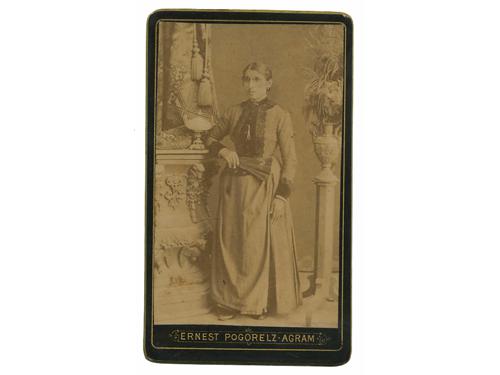 Aukcija br. 65 - Knjige, zemljovidi, plakati 1021 - OGULIN, Ogulin i Klek, fotograf M. Flaniak Ogulin, kraj XIX st. 30 EUR 1022 - OGULIN, Općinski ured, fotograf M. Flaniak Ogulin, kraj XIX st. 30 EUR 1023 - ZAGREB, G. & I. Varga, grupni portret, četri muškarca. Fotografija na kartonu, oko 1880. 12 EUR 1024 - ZAGREB, G. & I. Varga, grupni portret, tri žene. Fotografija na kartonu, oko 1899. 10 EUR 1025 - ZAGREB, G. & I. Varga, grupni portret, djevojčica s majkom. Fotografija na kartonu, oko 1899. 12 EUR 1026 - ZAGREB, G. & I. Varga, dječji portret. Fotografija na kartonu, oko 1899. 10 EUR 1027 - ZAGREB, G. & I. Varga, portret žene. Fotografija na kartonu, oko 1899. 10 EUR 1028 - ZAGREB, lot 2 fotografije; foto G. & I. Varga, oko 1900. 40 EUR 1029 - ZAGREB, Ernest Pogorelc, grupni portret, građanska obitelj. Fotografija na kartonu, oko 1880. 12 EUR 1030 - ZAGREB, Ernest Pogorelc, portret žene. Fotografija na kartonu, oko 1880. 12 EUR 1031 - ZAGREB, Ivan Standl, portret žene. Fotografija na kartonu, oko 1880. 12 EUR 1032 - ZAGREB, Mosinger, portret muškarca. Fotografija na kartonu, oko 1895. 10 EUR ←313233343536373839→