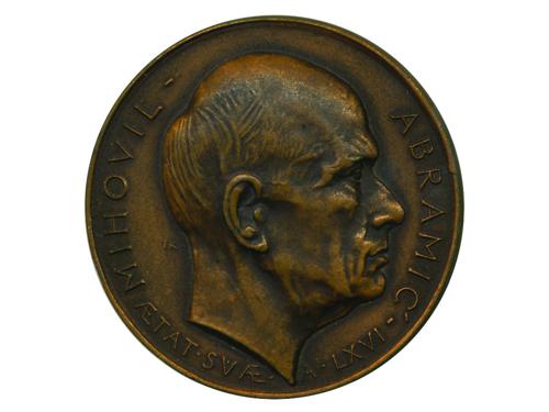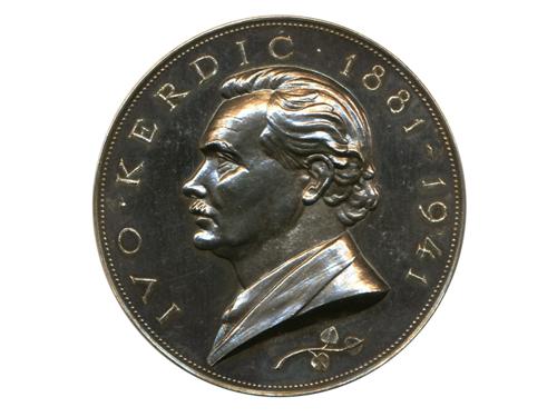 Aukcija br. 67 - Numizmatika, militarija 229 - Frangeš-Mihanović, Robert, medalja "Bik" za napredno živinogojstvo, AE, 50 mm, UNC, u originalnoj kutiji 85 EUR 230 - VALDEC, Rudolf, srebrna medalja "Narod za svoje nemoćnike", 1915, Ag, 129 g, 56x65 mm, izvrsna kvaliteta. RRR 300 EUR 231 - VALDEC, Rudolf, medalja Aleksandar i Marija 1922. AE, 85x67 mm 90 EUR 232 - VALDEC, Rudolf, jednostrana plaketa "Štrosmajer", 1905, AE, 56x70 mm, izvrsna kvaliteta. 40 EUR 233 - KERDIĆ, Ivo, medalja dr. Kurt Huhn, 1925, AE, 60 mm 85 EUR 234 - KERDIĆ, Ivo, medalja, Hrvatsko planinarsko društvo, 1934, AE, 45 mm 75 EUR 235 - KERDIĆ, Ivo, medalja dr. Ivo Kršnjavi, 1915, Zn, 70 mm, izuzetno rijetko 25 EUR 236 - KERDIĆ, Ivo, medalja “Novine Horvatske” 1935, AE, 82x63 mm, u originalnoj kutiji 225 EUR 237 - KERDIĆ, Ivo, medalja “za postradale od poplave/ Vladko Maček” 1938, AE, 54 mm 25 EUR 238 - KERDIĆ, Ivo, KRIVAK, Teodor medalja 60 rođendan I. Kerdića, 1941, Ag - 85 g, 55 mm, UNC 250 EUR 239 - KERDIĆ, Ivo, medalja "Alojzije Stepinac", 1944, AE posrebreno, 55 mm, UNC, izuzetno rijetko 300 EUR 240 - KERDIĆ, Ivo, medalja dr. Mihovil Abramić, SPLIT, 1950, AE, 61 mm 80 EUR ←151617181920212223→