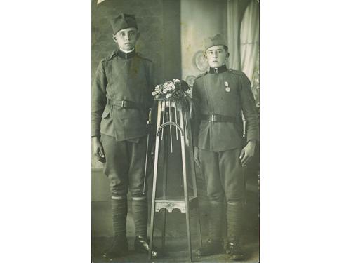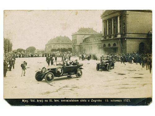 Aukcija br. 67 - Numizmatika, militarija 505 - ČASNIK JUGOSLAVENSKE VOJSKE, KASNIJE NDH VOJSKE, lot 3 fotografije. Karlovac/Beograd, 1935-45. 14 EUR 506 - NDH, ZAGREB polaganje vojničke zakletve u parku Maksimir, 10 fotografija 150x170 mm, izvrsna kvaliteta 240 EUR 507 - Aleksandar Karađorđević ispred Glavnog kolodvora u Zagrebu, fotorazglednica. Zagreb, 15. 8. 1925. 25 EUR 508 - OSIJEK, Hrvatski sokol, 1928 godina, fotografija 330x265 mm, 30 EUR 509 - XV. KLASA PILOTSKE ŠKOLE I. VAZDUHOPLOVNOG PUKA 1933. 18 EUR 510 - Kraljevina Jugoslavija, fotografija pilota, izvrsna s pilotskim znakom na prsima, 173x232 mm 30 EUR 511 - VOJNICI KRALJEVINE JUGOSLAVIJE, fotografija, oko 1920 8 EUR 512 - RATNI BRODOVI, lot fotografija zaljepljenih na kartonu, ratni brodovi, Dunav-Zimovnik. Novi Sad, 1920. 20 EUR 513 - TIVAT (Crna gora), postrojavanje vojske u luci, fotografija. 10. 5. 19(??) 10 EUR 514 - Fotografije (lot 6 kom) Riječni monitor „Drava“ – Ratni brod mornarice Kraljevine Jugoslavije, Novi Sad, oko 1930. 120 EUR 515 - KRALJEVINA JUGOSLAVIJA, fotografija diplomata, odlikovanja, atraktivno, 168x230 mm 15 EUR 516 - KRALJEVINA JUGOSLAVIJA, zanimljivi akvareli jugoslavenskih ratnih zarobljenika u logoru Nürnberg 1941. godine, 34x41 cm (2) i 28x34 cm (2) 120 EUR ←383940414243444546→