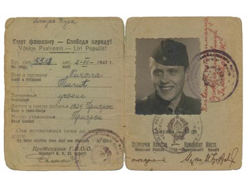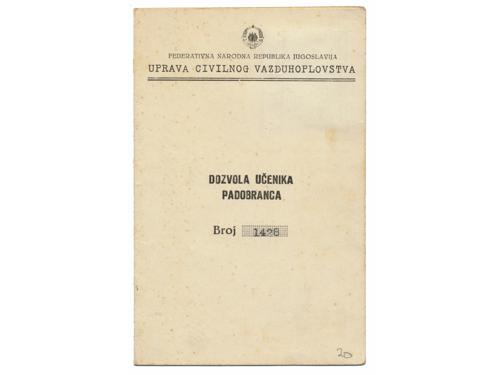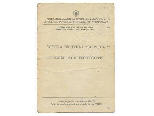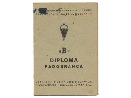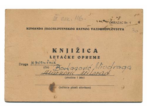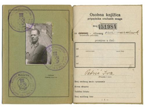 Aukcija br. 70 - Numizmatika, militarija Dokumenti, fotografije i ostalo 2315 - NDH, osobna knjižica pripadnika oružanih snaga, 1944, u izvrsnom stanju s koricama i dozvolom da može biti u civilnoj odjeći radi nedostatka uniformi. Rijetko i zanmiljivo. 30 EUR 2316 - NDH, osobna knjižica pripadnika oružanih snaga, 1944. 20 EUR 2317 - Jugoslavija, vojna knjižica DFJ, 1945. godina, rijetko, 85x110 mm 8 EUR 2318 - Jugoslavija, iskaznica-dozvola profesionalnog pilota 1960, 104x144 mm 6 EUR 2319 - Jugoslavija, B-diploma padobranca 1956, 73x104 mm 5 EUR 2320 - Jugoslavija, iskaznica-dozvola sportskog pilota 1963, 120x93 mm 5 EUR 2321 - Jugoslavija, iskaznica-dozvola prometnog pilota 1966, 105x146 mm 5 EUR 2322 - Jugoslavija, iskaznica-dozvola učenika padobranca 1956, 90x138 mm 4 EUR 2323 - Jugoslavija, iskaznica-dozvola član posade civilnog zrakoplova (JAT) 1963, 150x105 mm 5 EUR 2324 - Jugoslavija, iskaznica-dozvola pilota jedrilice 1973, 105x157 mm 5 EUR 2325 - Jugoslavija, knjižica letačke opreme 158x105 mm 4 EUR 2326 - JUGOSLAVIJA, osobna padobranska knjižica iz 1955. godine 195x112 mm 10 EUR ←1234567→