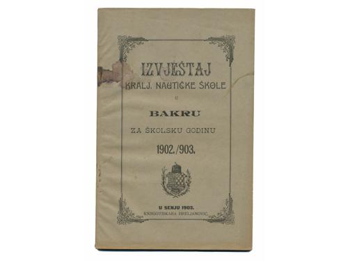 Aukcija br. 70 - Numizmatika, militarija Dokumenti, fotografije i ostalo 2327 - Izvještaj Kralj. nautičke škole u Bakru za školsku godinu 1901/902. Senj, 1902. 12 EUR 2328 - Izvještaj Kralj. nautičke škole u Bakru za školsku godinu 1902/903. Senj, 1903. 12 EUR 2329 - PORUČNIK BOJNOG BRODA, fotografija + dva atlasa torpeda i mehanizacije "Kraljevskog broda Dubrovnik" (razarač). 200 EUR 2330 - VAZDUHOPLOVNI GLASNIK, mesečni list, broj 2, Novi Sad, 1933. 12 EUR 2331 - Aleksandar Bubnov: Pomorski ratovi od prvih početaka do Drugog svjetskog rata I-III. Dubrovnik, Nakladna knjižara "Jadran", (1941?) 40 EUR 2332 - PULA/POLA, bitka kod Visa, 1866., foto atelje L. Mioni. 190 EUR 2333 - PULA/POLA, Glavni trg - Forum, 1886., foto atelje L. Mioni. 80 EUR 2334 - PULA/POLA, Slavoluk Sergijevaca - Zlatna vrata, 1886., foto atelje B. Circovich 60 EUR 2335 - PULA/POLA, pogled na luku, 1886., foto atelje B. Circovich 60 EUR 2336 - PULA/POLA, Arena, 1886., foto atelje B. Circovich 120 EUR 2337 - ZITA OD BOURBON-PARME, portret. 16 EUR 2338 - KARLO IV (I.) AUSTRIJSKI (1916-18.), portret. 16 EUR ←12345678→