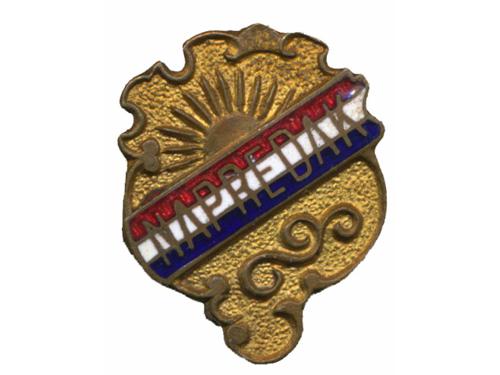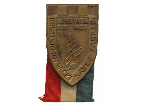 Aukcija br. 70 - Numizmatika, militarija Značke 2205 - HRVATSKA, NAPREDAK, Griesbach & Knaus Zagreb, 16x19 mm 16 EUR 2206 - HRVATSKA, OSIJEK, Osječki ribički športski klub, 1923, na papučicu, 13x15 mm, izuzetno rijetko 25 EUR 2207 - HRVATSKA, HPD (Hrvatsko pjevačko društvo) Trešnjevka, Zagreb, 16 mm, izuzetno rijetko, slomljena igla 25 EUR 2208 - ZAGREB, Hrvatski pjevački savez II. festival 1937, Griesbach i Knaus Zagreb, 29x44 mm 7 EUR 2209 - HRVATSKA, JADRANSKA STRAŽA, broj 5609, ugravirano: udruženje mesarskih obrtnika Zagreb, Griesbach i Knaus, Zagreb,značka 22x32 mm 20 EUR 2210 - SKOPLJE, Makedonija, značka 1944-1949, IKOM, Zagreb, 40x46 mm 70 EUR 2211 - SLOVENIJA, OREL-ORLI, oznaka, sportsko politička organizacija u Koruškoj i Štajerskoj nastala kao protuteža jugoslavenski nastrojenim sokolima. Bili su pronjemački odnosno proaustrijski orijentirani. 40 EUR ←12