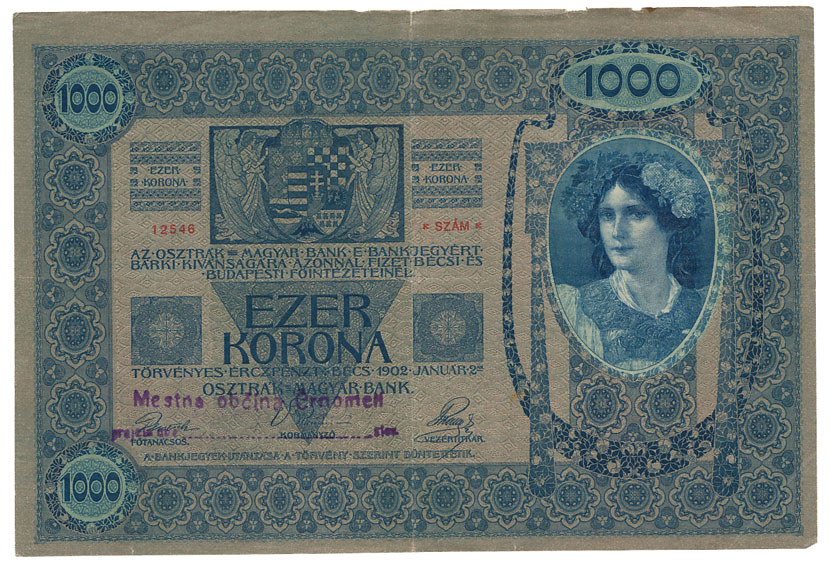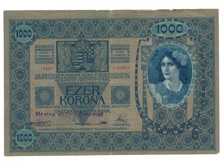 • 1000 kruna Slovenija Kraljevina SHS, Austrija, pretisak ČRNOMELJ / Mestna občina