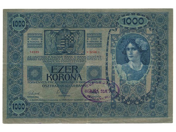 • 1000 kruna Slovenija Kraljevina SHS, Austrija, pretisak ŽUPANSTVO OKOLICA SLATINA okraj. glav. Ptuj