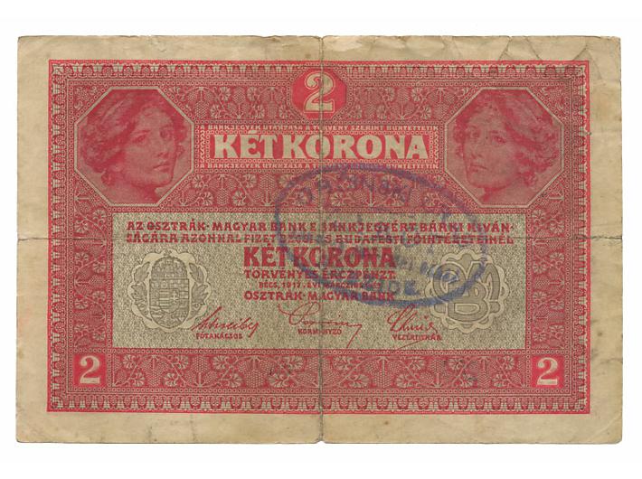 • 2 krune Slovenija Kraljevina SHS, Austrija, pretisak ZAKOT / OBČINSKI URAD okraj BREŽICE
