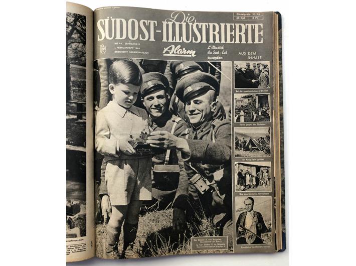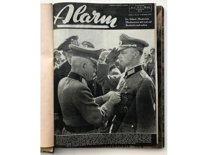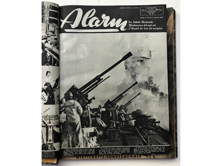 ALARM: DIE SÜDOST-ILLUSTRIERTE, časopis 22 broja uvezanih u jednu knjigu. God. 1943. br. 25-42; God. 1944. br. 43-49. Opis: ALARM: DIE SÜDOST-ILLUSTRIERTE, časopis 22 broja uvezanih u jednu knjigu. God. 1943. br. 25-42; God. 1944. br. 43-49. Ilustrirano. Tvrdi uvez, 29x36,5 cm. Stanje odlično. ALARM: DIE SÜDOST-ILLUSTRIERTE, časopis 22 broja uvezanih u jednu knjigu. God. 1943. br. 25-42; God. 1944. br. 43-49. Aukcija: Aukcija br. 64 - Numizmatika, militarija Kataloški broj: 583 Kategorija: Dokumenti i ostalo Trenutna ponuđena cijena je 110EUR, ukoliko želite dati svoju ponudu ona mora biti barem 110EUR ili veća. Upišite vrijednost vaše ponude: Ostali predmeti iz kategorije: Dokumenti i ostalo 531 60 EUR 532 100 EUR 533 12 EUR 534 10 EUR 535 15 EUR 536 15 EUR 537 7 EUR 538 30 EUR 539 15 EUR 540 15 EUR 541 20 EUR 542 5 EUR 543 60 EUR 544 100 EUR 545 60 EUR 546 35 EUR 547 8 EUR 548 10 EUR 549 18 EUR 550 60 EUR 123→