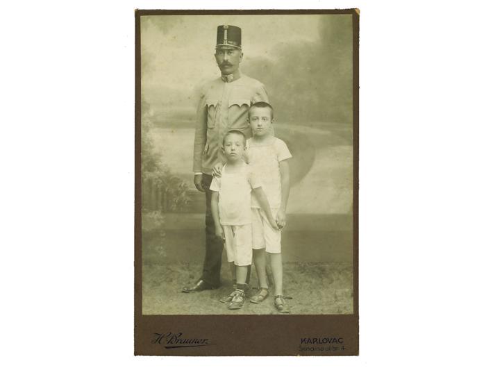 AUSTROUGARSKI OFICIR SA SINOVIMA, fotografija na kartonu. Karlovac, oko 1910.