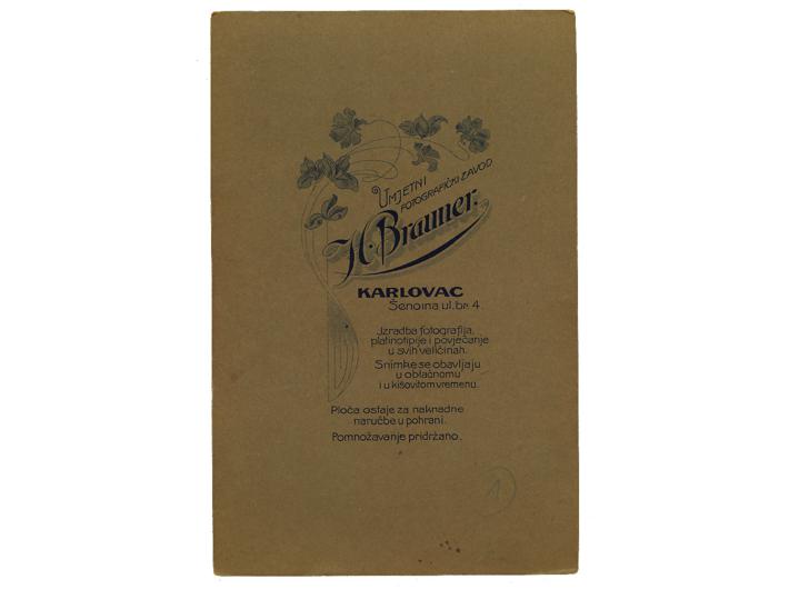 Opis: AUSTROUGARSKI OFICIR SA SINOVIMA, fotografija na kartonu. Karlovac, oko 1910. Foto studio: H. Brauner. 11x17 cm.