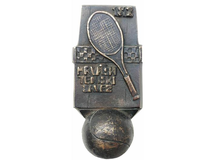 Opis: BAHORIĆ, Belizar, medalja stajačica "Hrvatski teniski savez" 1997, AE - 2040 g, 80x160 mm
