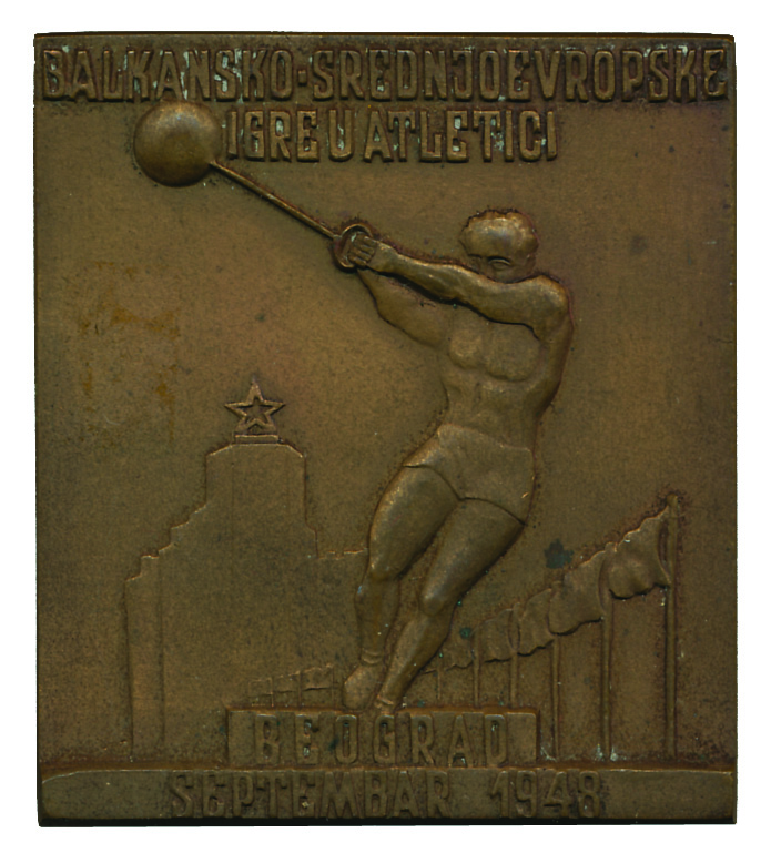 BEOGRAD, medalja Balkanske srednjeuropske igre 1948, AE, 54x60 mm Opis: BEOGRAD, medalja Balkanske srednjeuropske igre 1948, AE, 54x60 mm BEOGRAD, medalja Balkanske srednjeuropske igre 1948, AE, 54x60 mm Aukcija: Aukcija br. 67 - Numizmatika, militarija Kataloški broj: 302 Kategorija: Medalje - Srbija Trenutna ponuđena cijena je 12EUR, ukoliko želite dati svoju ponudu ona mora biti barem 14EUR ili veća. Upišite vrijednost vaše ponude: Ostali predmeti iz kategorije: Medalje - Srbija 299 20 EUR 300 35 EUR 301 12 EUR 302 12 EUR 303 8 EUR 304 10 EUR