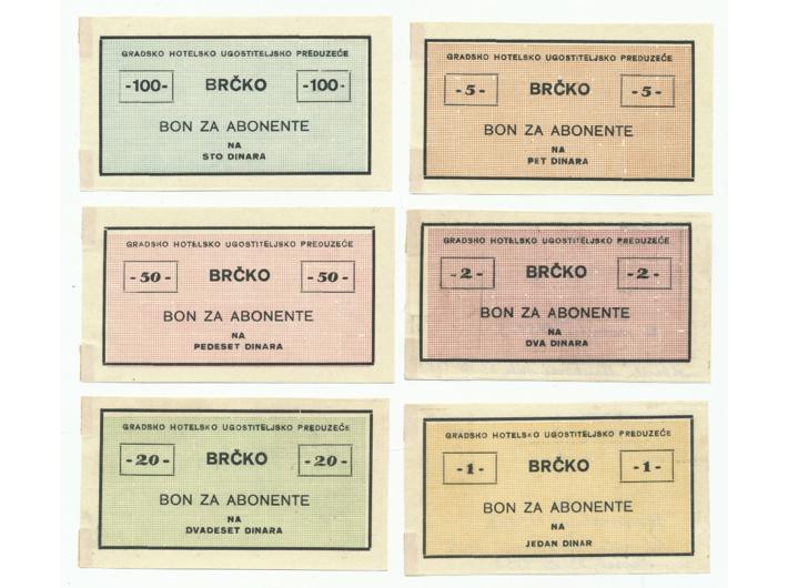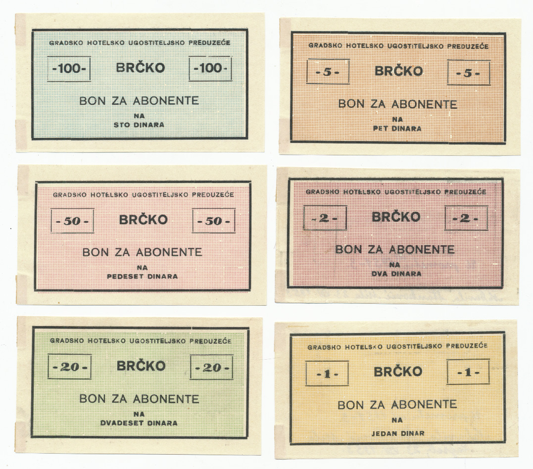 BRČKO, gradski hoteli, abonentski bonovi na 1, 2, 5, 20, 50 i 100 dinara (6), rijetko Opis: BRČKO, gradski hoteli, abonentski bonovi na 1, 2, 5, 20, 50 i 100 dinara (6), rijetko BRČKO, gradski hoteli, abonentski bonovi na 1, 2, 5, 20, 50 i 100 dinara (6), rijetko Aukcija: Aukcija br. 64 - Numizmatika, militarija Kataloški broj: 196 Kategorija: Papirni novac - Bosna i Hercegovina Trenutna ponuđena cijena je 15EUR, ukoliko želite dati svoju ponudu ona mora biti barem 17EUR ili veća. Upišite vrijednost vaše ponude: Ostali predmeti iz kategorije: Papirni novac - Bosna i Hercegovina 195 20 EUR 196 30 EUR