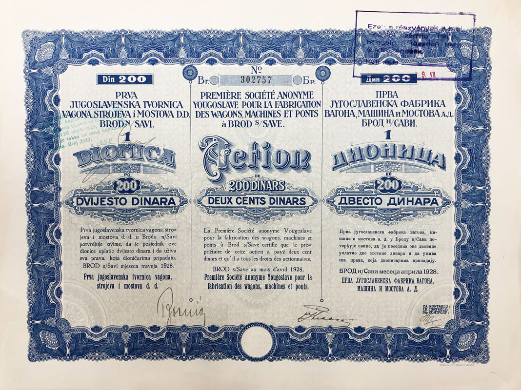 BROD n/SAVI, dionica Prve jugoslavenske tvornice vagona, strojeva i mostova d.d., 200 dinara, travanj 1928, 39x29,5 cm Opis: BROD n/SAVI, dionica Prve jugoslavenske tvornice vagona, strojeva i mostova d.d., 200 dinara, travanj 1928, 39x29,5 cm BROD n/SAVI, dionica Prve jugoslavenske tvornice vagona, strojeva i mostova d.d., 200 dinara, travanj 1928, 39x29,5 cm Aukcija: Aukcija br. 64 - Numizmatika, militarija Kataloški broj: 357 Kategorija: Dionice - Hrvatska Trenutna ponuđena cijena je 10EUR, ukoliko želite dati svoju ponudu ona mora biti barem 10EUR ili veća. Upišite vrijednost vaše ponude: Ostali predmeti iz kategorije: Dionice - Hrvatska 335 80 EUR 336 40 EUR 337 35 EUR 338 15 EUR 339 30 EUR 340 20 EUR 341 30 EUR 342 100 EUR 343 60 EUR 344 10 EUR 345 8 EUR 346 18 EUR 347 20 EUR 348 12 EUR 349 30 EUR 350 10 EUR 351 15 EUR 352 22 EUR 353 15 EUR 354 8 EUR 12→