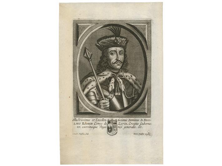 Opis: C. Meyssens: NIKOLA ZRINSKI (1620.-1664.). Praunuk Nikole Šubića Zrinskog, brat Petra Zrinskog, hrvatski ban, vojskovođa i pjesnik. Poginuo u sumnjivim okolnostima u lovu na veprove. Dimenzije 14,5x11,5 cm. Dimenzije lista 24x15 cm. Amsterdam, 1663.