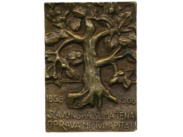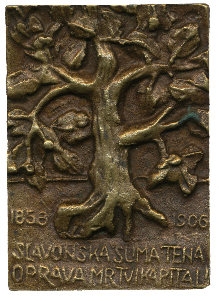 CRLENJAK, Brane, 100-godišnjica rođenja Josipa Kozarca, 1958., dvostrana plaketa, bronca, 59x83 mm