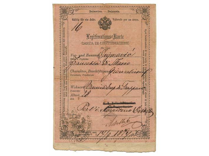 DALMACIJA, legitimacija iz 1874 na ime Dujmović Franceska, atraktivno i rijetko, 95x134 mm Opis: DALMACIJA, legitimacija iz 1874 na ime Dujmović Franceska, atraktivno i rijetko, 95x134 mm DALMACIJA, legitimacija iz 1874 na ime Dujmović Franceska, atraktivno i rijetko, 95x134 mm Aukcija: Aukcija br. 70 - Numizmatika, militarija Kataloški broj: 2303 Kategorija: Dokumenti, fotografije i ostalo Trenutna ponuđena cijena je 16EUR, ukoliko želite dati svoju ponudu ona mora biti barem 18EUR ili veća. Upišite vrijednost vaše ponude: Ostali predmeti iz kategorije: Dokumenti, fotografije i ostalo 2279 55 EUR 2280 25 EUR 2281 50 EUR 2282 95 EUR 2283 60 EUR 2284 350 EUR 2285 150 EUR 2286 10 EUR 2287 10 EUR 2288 45 EUR 2289 85 EUR 2290 25 EUR 2291 340 EUR 2292 1000 EUR 2293 2400 EUR 2294 2000 EUR 2295 12 EUR 2296 8 EUR 2297 250 EUR 2298 14 EUR 1234→