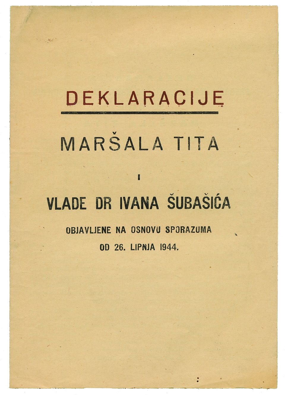 Deklaracije, Maršala Tita i vlade dr. Ivana Šubašića, objavljene na osnovu sporazuma od 26. lipnja 1944. Opis: Deklaracije, Maršala Tita i vlade dr. Ivana Šubašića, objavljene na osnovu sporazuma od 26. lipnja 1944. Izdanje "Vjesnika" jedinstvene narodno-oslobodilačke fronte Hrvatske. Letak, 6 str., stanje odlično. Deklaracije, Maršala Tita i vlade dr. Ivana Šubašića, objavljene na osnovu sporazuma od 26. lipnja 1944. Aukcija: Aukcija br. 67 - Numizmatika, militarija Kataloški broj: 551 Kategorija: Dokumenti i ostalo Trenutna ponuđena cijena je 8EUR, ukoliko želite dati svoju ponudu ona mora biti barem 8EUR ili veća. Upišite vrijednost vaše ponude: Ostali predmeti iz kategorije: Dokumenti i ostalo 524 40 EUR 525 75 EUR 526 45 EUR 527 100 EUR 528 10 EUR 529 10 EUR 530 150 EUR 531 35 EUR 532 120 EUR 533 20 EUR 534 12 EUR 535 20 EUR 536 8 EUR 537 17 EUR 538 40 EUR 539 6 EUR 540 30 EUR 541 30 EUR 542 60 EUR 543 25 EUR 1234→