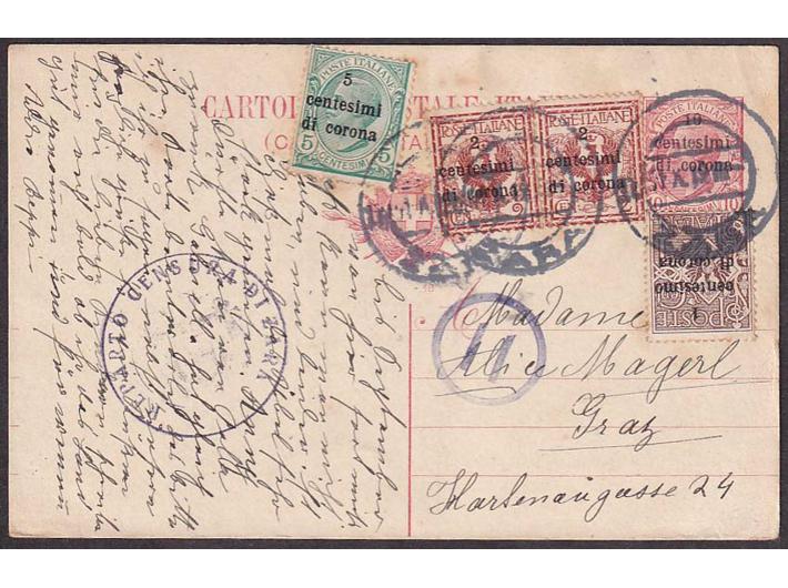 Dopisnica dofrankirana i upućena iz Zadra u Graz 01.11. 1919. Opis: Dopisnica dofrankirana i upućena iz Zadra u Graz 01.11. 1919. Cenzurirano po vojnoj cenzuri u Zadru. Višebojna atrakivna frankatura. Dobra kvaliteta. Dopisnica dofrankirana i upućena iz Zadra u Graz 01.11. 1919. Aukcija: Aukcija br. 60 - Filatelija i razglednice Kataloški broj: 274 Kategorija: Dalmacija Kvaliteta: ✉ Trenutna ponuđena cijena je 140EUR, ukoliko želite dati svoju ponudu ona mora biti barem 140EUR ili veća. Upišite vrijednost vaše ponude: Ostali predmeti iz kategorije: Dalmacija ✉ 251 70 EUR ✉ 252 160 EUR ✉ 253 100 EUR ✉ 254 30 EUR ** 255 50 EUR ☉ 256 75 EUR ** 257 40 EUR ** 258 250 EUR ** 259 250 EUR ✉ 260 20 EUR ✉ 261 25 EUR ✉ 262 25 EUR ✉ 263 35 EUR ✉ 264 16 EUR * 265 40 EUR * 266 50 EUR * 267 50 EUR */⦿ 268 60 EUR * 269 50 EUR ▲ 270 14 EUR 12→