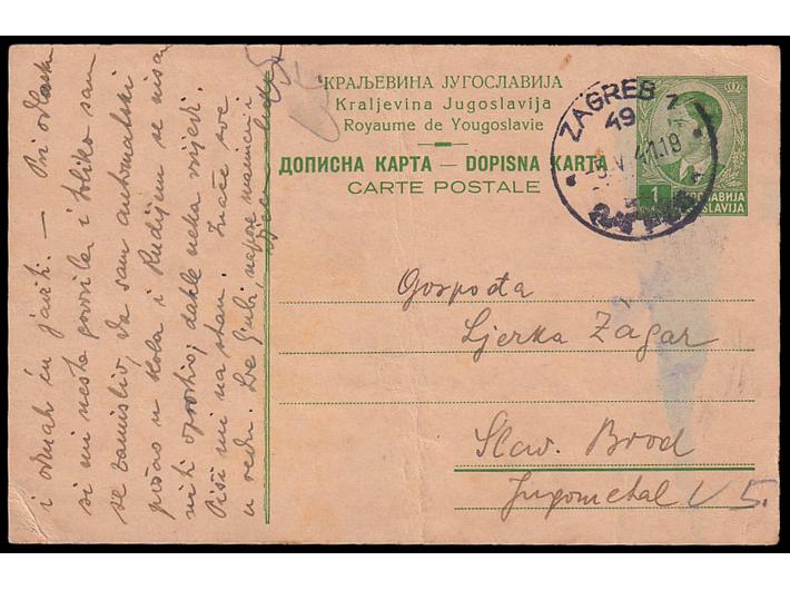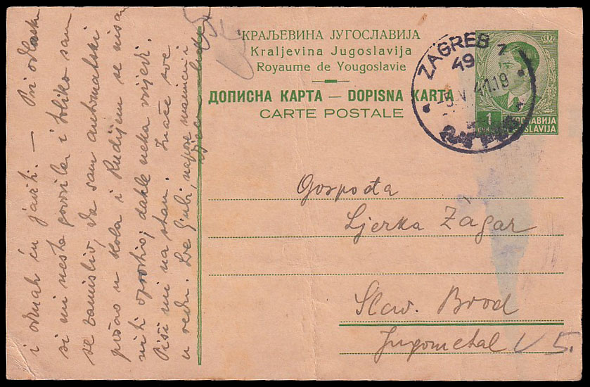 Dopisnica kraljevine Jugoslavije upućena iz Zagreba u Slavonski Brod 05.05. 1941. Opis: Dopisnica kraljevine Jugoslavije upućena iz Zagreba u Slavonski Brod 05.05. 1941. Žig pošte Zagreb 49 i s ćirilićnim nazivom. Kasni datum uporabe dopisnice i žiga s ćirilicom. Dobra kvaliteta. Dopisnica kraljevine Jugoslavije upućena iz Zagreba u Slavonski Brod 05.05. 1941. Aukcija: Aukcija br. 63 - Filatelija i razglednice Kataloški broj: 183 Kategorija: Nezavisna Država Hrvatska Kvaliteta: ✉ Trenutna ponuđena cijena je 20EUR, ukoliko želite dati svoju ponudu ona mora biti barem 25EUR ili veća. Upišite vrijednost vaše ponude: Ostali predmeti iz kategorije: Nezavisna Država Hrvatska ✉ 180 60 EUR ✉ 181 20 EUR ✉ 182 20 EUR ✉ 183 20 EUR ✉ 184 25 EUR ✉ 185 20 EUR ✉ 186 20 EUR ✉ 187 30 EUR ** 188 40 EUR ** 189 130 EUR ** 190 75 EUR ** 191 35 EUR ** 192 40 EUR ** 193 30 EUR ** 194 100 EUR **/* 195 80 EUR ** 196 35 EUR * 197 50 EUR ✉ 198 20 EUR ✉ 199 25 EUR 123456789→