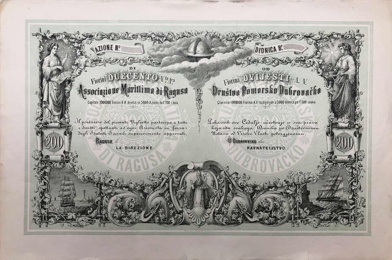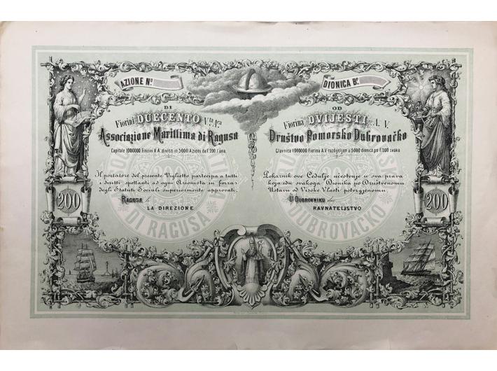 DUBROVNIK-RAGUSA, dionica “DRUŠTVO POMORSKO DUBROVAČKO D.D.", 200 fiorina, 39x26 cm Opis: DUBROVNIK-RAGUSA, dionica “DRUŠTVO POMORSKO DUBROVAČKO D.D.", 200 fiorina, 39x26 cm DUBROVNIK-RAGUSA, dionica “DRUŠTVO POMORSKO DUBROVAČKO D.D.", 200 fiorina, 39x26 cm Aukcija: Aukcija br. 67 - Numizmatika, militarija Kataloški broj: 198 Kategorija: Dionice - Hrvatska Trenutna ponuđena cijena je 85EUR, ukoliko želite dati svoju ponudu ona mora biti barem 90EUR ili veća. Upišite vrijednost vaše ponude: Ostali predmeti iz kategorije: Dionice - Hrvatska 196 75 EUR 197 90 EUR 198 85 EUR 199 35 EUR 200 70 EUR 201 25 EUR 202 30 EUR 203 15 EUR 204 15 EUR 205 100 EUR 206 35 EUR 207 12 EUR 208 12 EUR 209 12 EUR 210 5 EUR 211 15 EUR 212 15 EUR 213 20 EUR 214 15 EUR 215 10 EUR