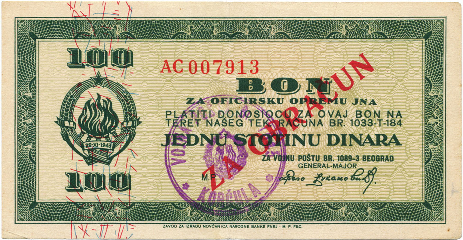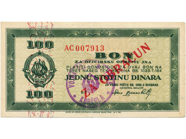 FNR Jugoslavija, 100 dinara bon za oficirsku opremu, žig vojna pošta KORČULA, XF, izuzetno rijetko Opis: FNR Jugoslavija, 100 dinara bon za oficirsku opremu, žig vojna pošta KORČULA, XF, izuzetno rijetko FNR Jugoslavija, 100 dinara bon za oficirsku opremu, žig vojna pošta KORČULA, XF, izuzetno rijetko Aukcija: Aukcija br. 70 - Numizmatika, militarija Kataloški broj: 2110 Kategorija: Papirni novac - Socijalistička Jugoslavija Trenutna ponuđena cijena je 50EUR, ukoliko želite dati svoju ponudu ona mora biti barem 50EUR ili veća. Upišite vrijednost vaše ponude: Ostali predmeti iz kategorije: Papirni novac - Socijalistička Jugoslavija 2091 1800 EUR 2092 120 EUR 2093 650 EUR 2094 2200 EUR 2095 500 EUR 2096 2500 EUR 2097 1700 EUR 2098 140 EUR 2099 35 EUR 2100 25 EUR 2101 80 EUR 2102 16 EUR 2103 8 EUR 2104 50 EUR 2105 80 EUR 2106 20 EUR 2107 35 EUR 2108 55 EUR 2109 10 EUR 2110 50 EUR 12→
