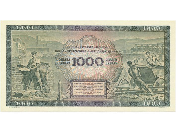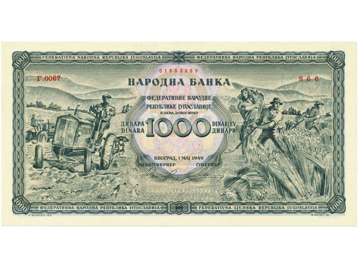 • FNR Jugoslavija, informbiro 1000 dinara 1.5.1949, tzv. "traktor", izuzetno rijetko, UNC
