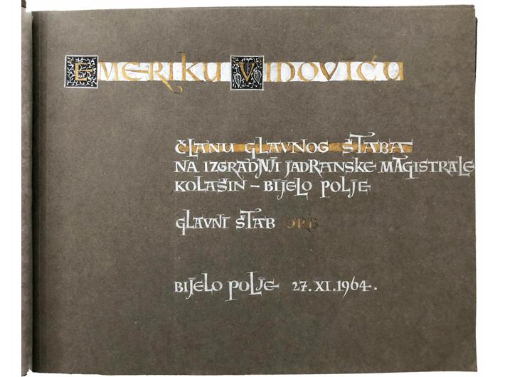 • Foto album, CRNA GORA, izgradnja Jadranske magistrale dionica Kolašin - Bijelo Polje. 1964. 39 fotografija s prikazima izgradnje. 41 x 32 cm