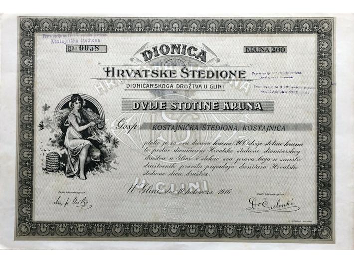 GLINA, dionica "Hrvatska štedionica" d.d., 200 kruna, 19.8.1916., 39x26 cm Opis: GLINA, dionica "Hrvatska štedionica" d.d., 200 kruna, 19.8.1916., 39x26 cm GLINA, dionica "Hrvatska štedionica" d.d., 200 kruna, 19.8.1916., 39x26 cm Aukcija: Aukcija br. 64 - Numizmatika, militarija Kataloški broj: 346 Kategorija: Dionice - Hrvatska Trenutna ponuđena cijena je 18EUR, ukoliko želite dati svoju ponudu ona mora biti barem 18EUR ili veća. Upišite vrijednost vaše ponude: Ostali predmeti iz kategorije: Dionice - Hrvatska 335 80 EUR 336 40 EUR 337 35 EUR 338 15 EUR 339 30 EUR 340 20 EUR 341 30 EUR 342 100 EUR 343 60 EUR 344 10 EUR 345 8 EUR 346 18 EUR 347 20 EUR 348 12 EUR 349 30 EUR 350 10 EUR 351 15 EUR 352 22 EUR 353 15 EUR 354 8 EUR 12→