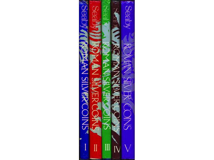 Opis: H. A. Seaby: Roman Silver Coins I-V (komplet). London 1978. III. izdanje. revidirali David R. Sear i Robert Loosley. Vol. I: THE REPUBLIC TO AUGUSTUS, Vol. II: TIBERIUS TO COMMODUS, Vol. III: PERTINAX TO BALBINUS AND PUPIENUS, Vol. IV: GORDIAN III TO POSTUMUS, Vol. V: CARAUSIUS TO ROMULUS AUGUSTUS. Stanje odlično, rijetko u kompletu.