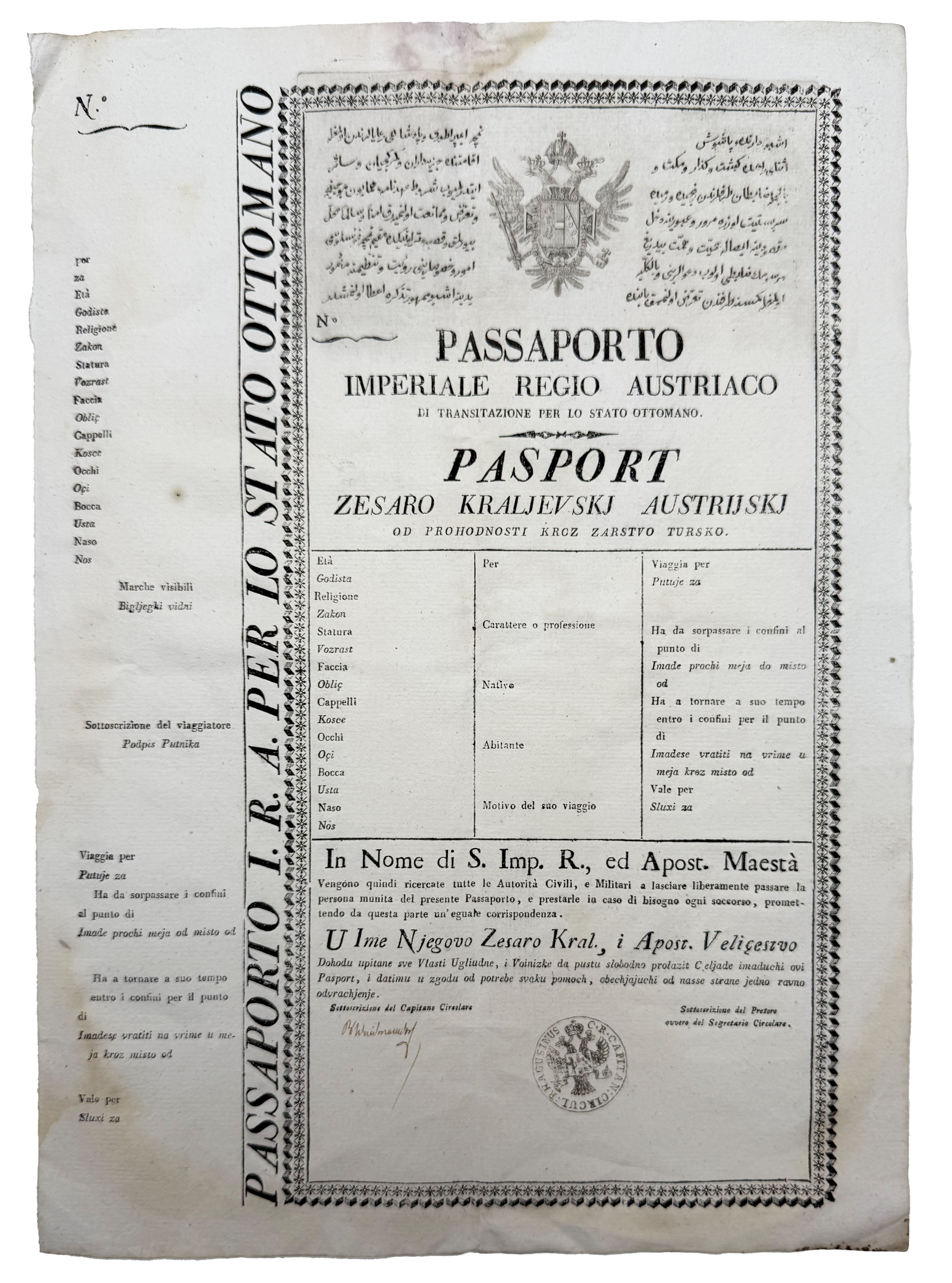 HRVATSKA - putovnica oko 1820/30 godine, župa DUBROVNIK, vjerojatno najstarija putovnica na hrvatskom jeziku, 31x44 cm Opis: HRVATSKA - putovnica oko 1820/30 godine, župa DUBROVNIK, vjerojatno najstarija putovnica na hrvatskom jeziku, 31x44 cm HRVATSKA - putovnica oko 1820/30 godine, župa DUBROVNIK, vjerojatno najstarija putovnica na hrvatskom jeziku, 31x44 cm Aukcija: Aukcija br. 70 - Numizmatika, militarija Kataloški broj: 2302 Kategorija: Dokumenti, fotografije i ostalo Trenutna ponuđena cijena je 150EUR, ukoliko želite dati svoju ponudu ona mora biti barem 160EUR ili veća. Upišite vrijednost vaše ponude: Ostali predmeti iz kategorije: Dokumenti, fotografije i ostalo 2279 55 EUR 2280 25 EUR 2281 50 EUR 2282 95 EUR 2283 60 EUR 2284 350 EUR 2285 150 EUR 2286 10 EUR 2287 10 EUR 2288 45 EUR 2289 85 EUR 2290 25 EUR 2291 340 EUR 2292 1000 EUR 2293 2400 EUR 2294 2000 EUR 2295 12 EUR 2296 8 EUR 2297 250 EUR 2298 14 EUR 1234→