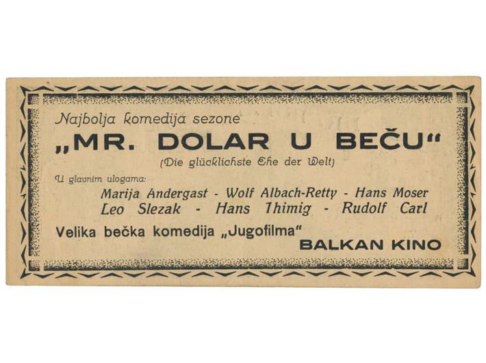 • HRVATSKA, 1 dollar, propaganda za film Mr. Dolar u Beču 1938 (Die gluckliste Ehe der Welt), BALKAN kino, rijetko, UNC