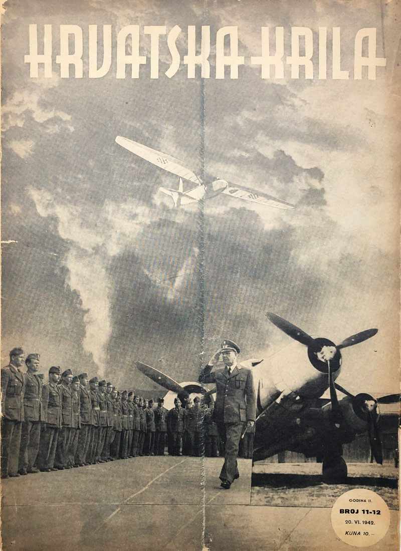 Opis: HRVATSKA KRILA br. 11 i 12/1942. Hrvatska krila je bio časopis zapovjedništva zračnih snaga Nezavisne Države Hrvatske koji je od jeseni 1941. do 1945. izlazio svakih petnaest dana (polumjesečnik). Časopis je raznim proslovima i fotografskim izvještajima pratio svakodnevni život, praktičnu obuku i borbeno djelovanje hrvatskih zrakoplovaca, a uz to je znatan prostor posvećen promidžbi zrakoplovstva, zrakoplovne tehnike i sportskog zrakoplovstva.