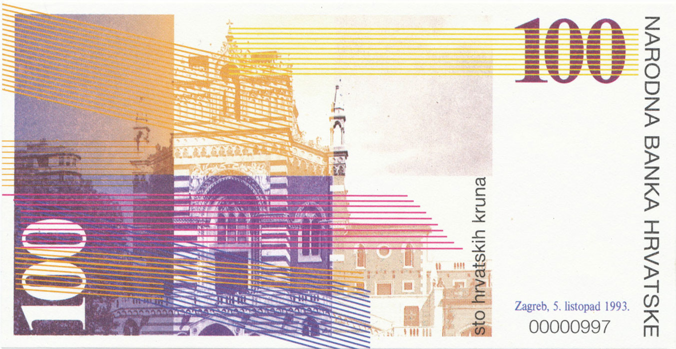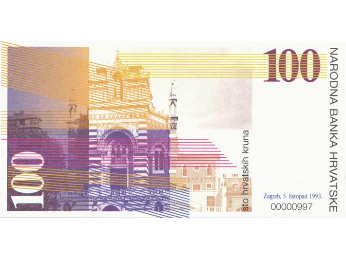 • HRVATSKA, Republika, 100 kruna 5. listopad 1993., jednostrana, autora B. Ljubičića, rijetko, UNC