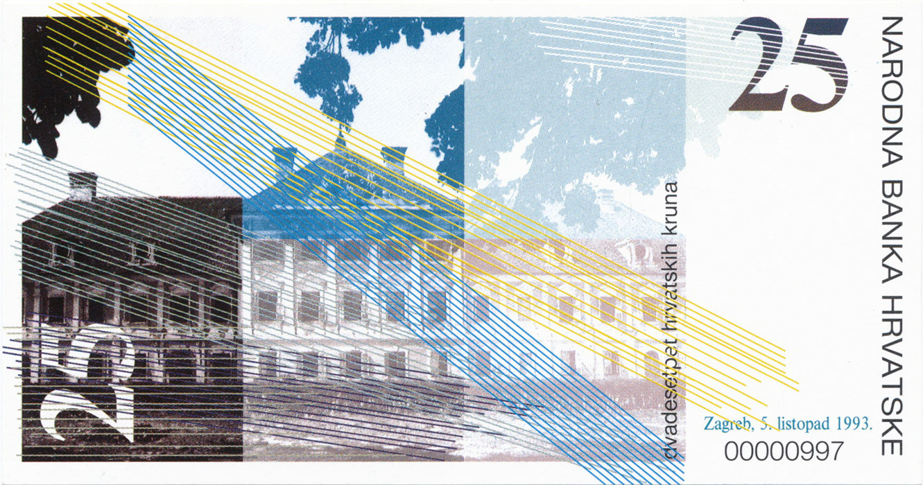• HRVATSKA, Republika, 25 kruna 5. listopad 1993., jednostrana, autora B. Ljubičića, rijetko, UNC