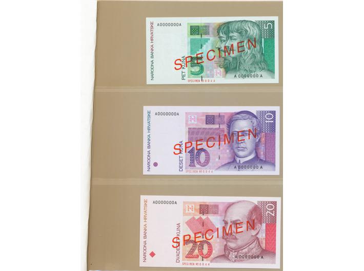 Opis: HRVATSKA, Republika, set SPECIMEN, 5, 10, 20, 50, 100, 500, 1000 kuna 1993. ser. br. 0044, u originalnom albumu. UNC