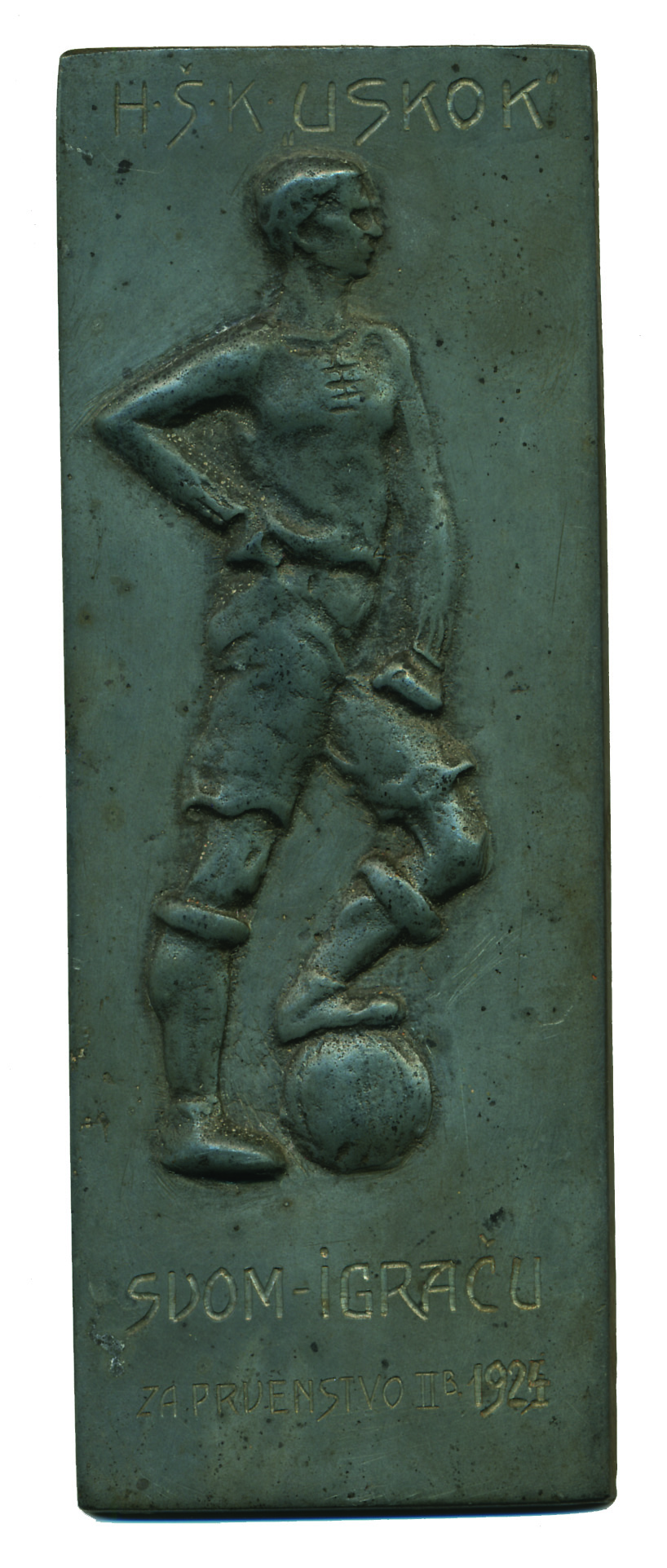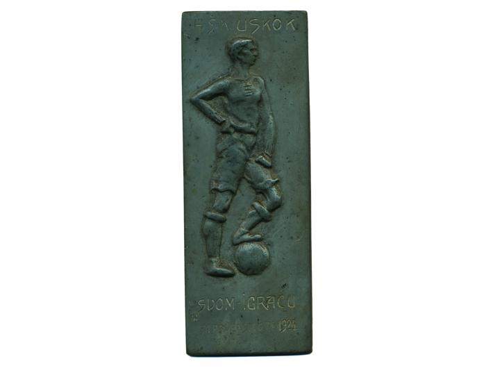 HŠK "Uskok" medalja, "svom igraču" 1924, Sn, 56x150 mm Opis: HŠK "Uskok" medalja, "svom igraču" 1924, Sn, 56x150 mm HŠK "Uskok" medalja, "svom igraču" 1924, Sn, 56x150 mm Aukcija: Aukcija br. 67 - Numizmatika, militarija Kataloški broj: 291 Kategorija: Nogomet Trenutna ponuđena cijena je 37EUR, ukoliko želite dati svoju ponudu ona mora biti barem 42EUR ili veća. Upišite vrijednost vaše ponude: Ostali predmeti iz kategorije: Nogomet 290 15 EUR 291 75 EUR 292 60 EUR 293 35 EUR 294 30 EUR 295 17 EUR 296 20 EUR 297 10 EUR 298 10 EUR 579 130 EUR
