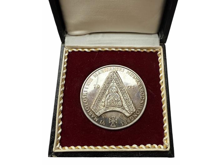 Opis: JANEŠ, Želimir, 1971., medalja, "Marijanski kongres u Zagrebu/Marija Bistrica, Ag - 54,23 g, 50 mm, u originalnoj kutiji