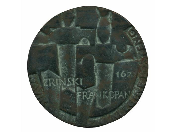 Opis: JANEŠ, Želimir, medalja "OZALJ" 1671-1971 (300 godina smaknuća P.Zrinskog i F.K. Frankopana, AE - 69 mm, kutija