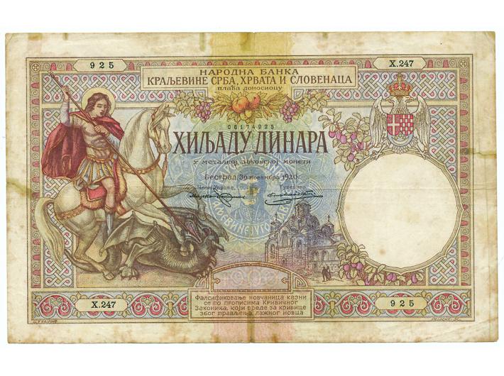 Jugoslavija, Kraljevina, 1000 dinara 1920, VG-VF Opis: Jugoslavija, Kraljevina, 1000 dinara 1920, VG-VF Jugoslavija, Kraljevina, 1000 dinara 1920, VG-VF Aukcija: Aukcija br. 67 - Numizmatika, militarija Kataloški broj: 139 Kategorija: Papirni novac - Kraljevina Jugoslavija Trenutna ponuđena cijena je 260EUR, ukoliko želite dati svoju ponudu ona mora biti barem 280EUR ili veća. Upišite vrijednost vaše ponude: Ostali predmeti iz kategorije: Papirni novac - Kraljevina Jugoslavija 137 35 EUR 138 35 EUR 139 260 EUR 140 50 EUR 141 70 EUR 142 8 EUR 143 8 EUR 144 10 EUR 145 8 EUR 146 8 EUR 147 55 EUR 148 3200 EUR
