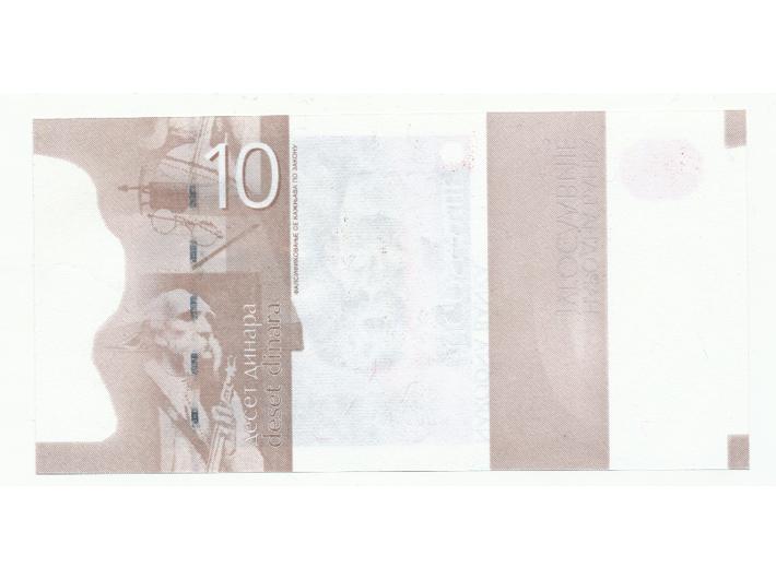 Opis: JUGOSLAVIJA, 10 dinara 2000., proba neizdane novčanice "Vuk Karađić", sigurnosna nit, UNC, izuzetno rijetko