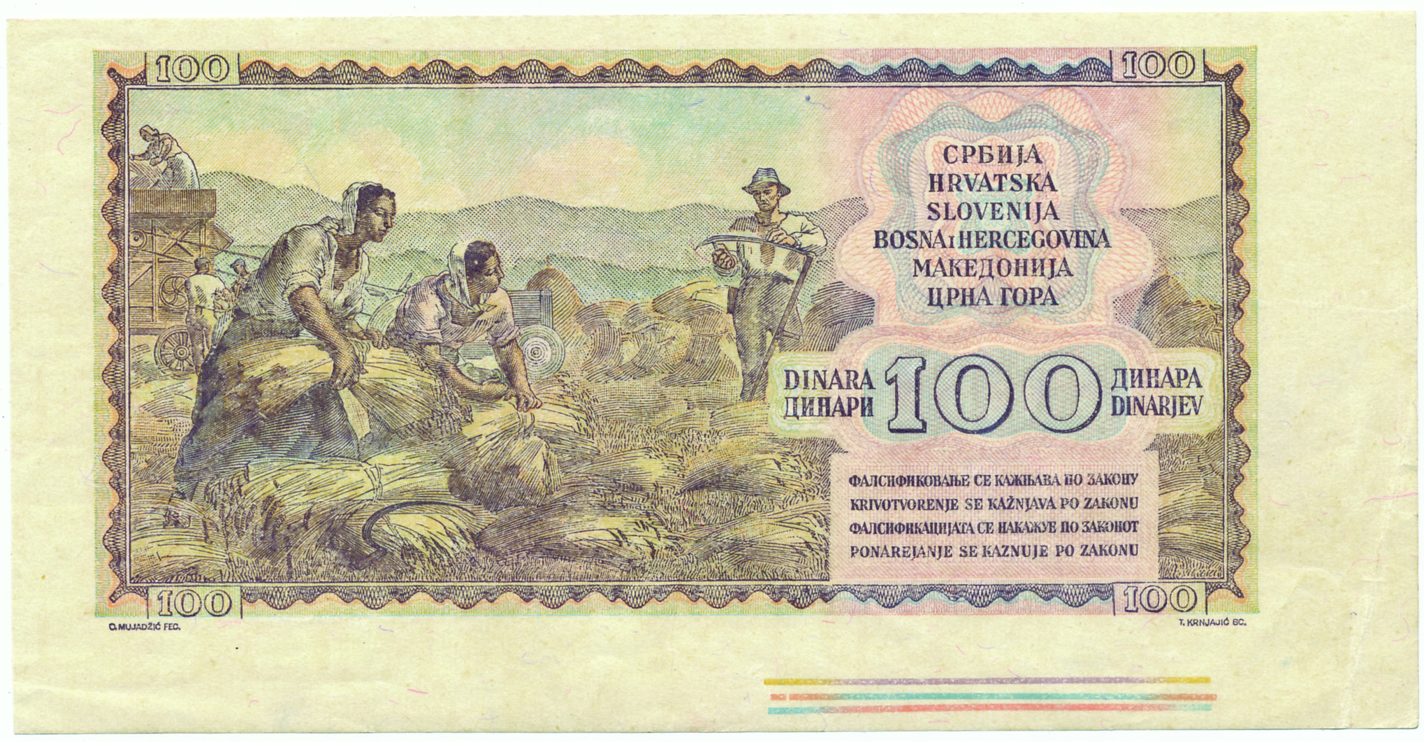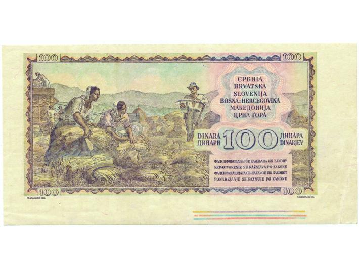 Opis: Jugoslavija, 100 dinara 1949/53 - probni otisak naličja, XF-aUNC