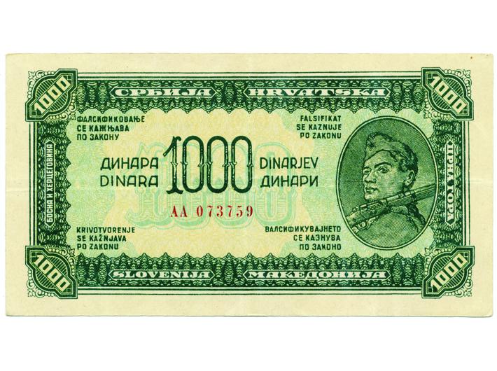 Opis: Jugoslavija, 1000 dinara 1944. - falsifikat iz vremena, XF