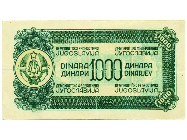 Jugoslavija, 1000 dinara 1944. - falsifikat iz vremena, XF