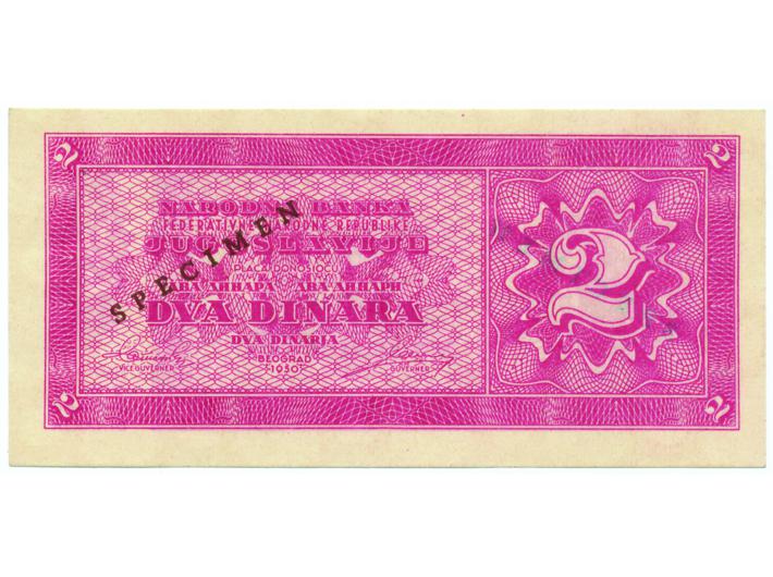 Jugoslavija, 2 dinara 1950. SPECIMEN UNC