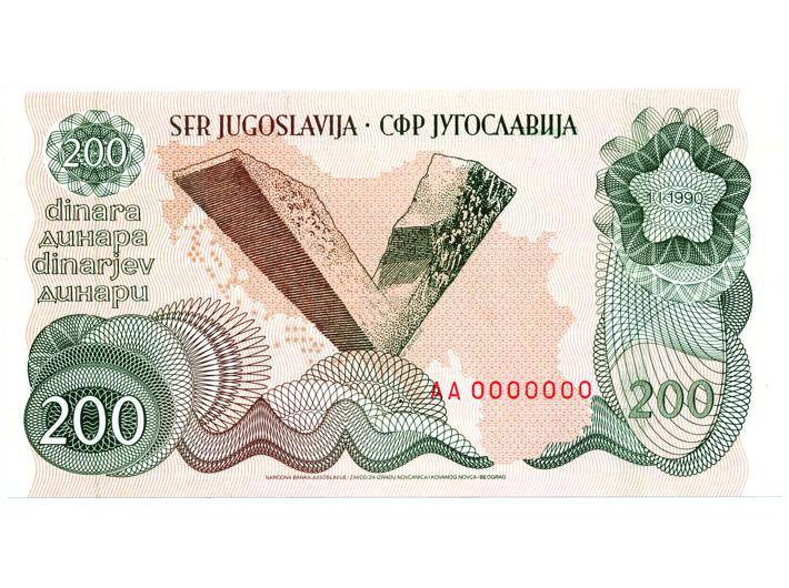 Jugoslavija, 200 dinara 1990. AA0000000 UNC