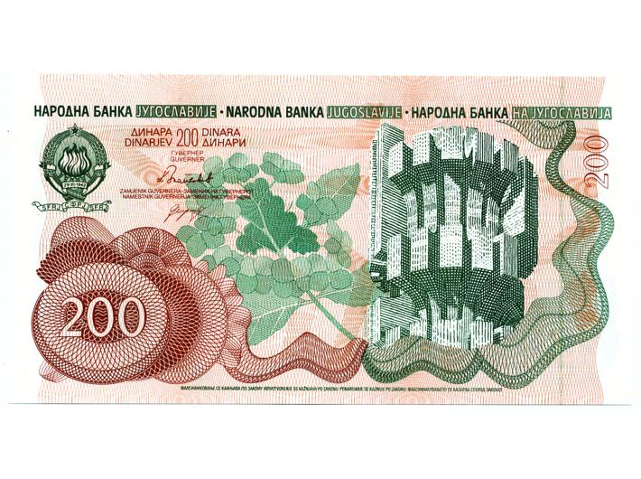 Opis: Jugoslavija, 200 dinara 1990. AA0000000 UNC